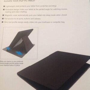 Sleek, durable case with adjustable stand. Lightweight shell protects your tablet from scratches and dings Kickstand design holds your tablet at the perfect angle for watching movies, reading, and video chatting Full access to all ports, buttons, and camera Slim, low-profile design easily slides into your briefcase or computer bag Elevate your iPad Pro tablet. The case is lightweight and slim so you can slide your tablet into your briefcase or computer bag and carry it around easily.