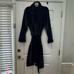 Super SOFT & PLUSH - Dark Navy Blue Unisex Robe by BROOKSTONE .It has Long Sleeves, 2 Outside Pockets and a Matching Belt . Calf Length, about 45 inches long.