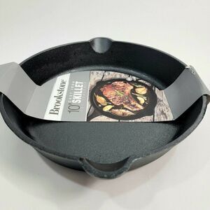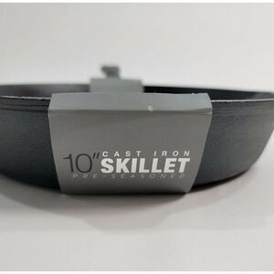 Brookstone 10" Cast Iron Preseason Skillet Double Spout w Handle.