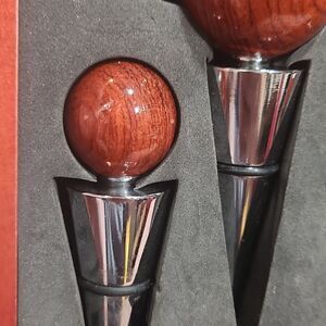 Brookstone Set Of 3 Mahogany Wine Stoppers