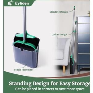 Broom and Dustpan Set, Long Handle Sweep Combo Upright Dustpan