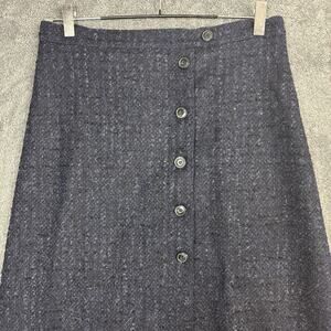 Brora Button Front A-Line Skirt Womens UK 10 / US 6 Blue Tweed Wool Blend Lined