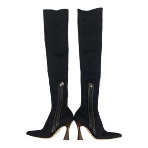 NEW Brother Vellies Brandy Over The knee Sock Boot Heels in Midnight Size 9. Features: Cushioned inner. A sculpted flared heel balances the squared-off toe on a genuine leather sole.Thigh high neoprene and spandex boots to hug your legs. Inner zip for easy on and off.