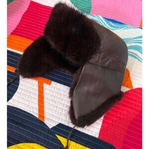 Brown 100% Real Natural Fur Winter Hat Authentic Ushanka Trapper Ear Flaps