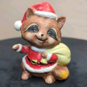 Brown 3 1/2" HOMCO Racoon in Santa Suit with Bag Figurine Numbered Taiwan