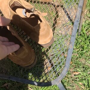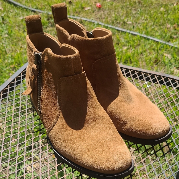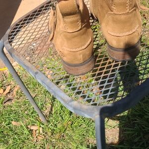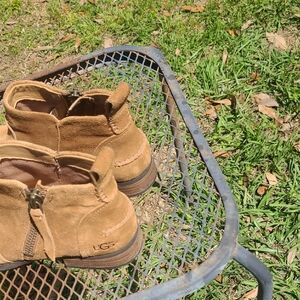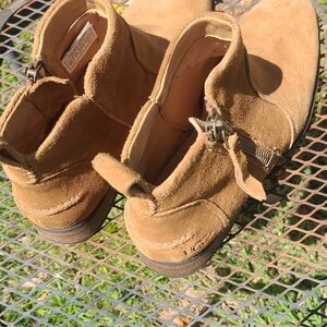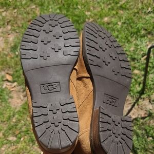 Uggs Womens brown suede ankle boots with side zipper for easy on and off. Soft suede upper offers a refined, comfortable look. Durable rubber sole provides traction and all-day wear. Stylish brown color pairs well with casual and smart-casual outfits. size 8.5 in great condition