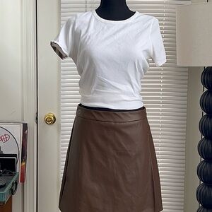 This brown A-line mini skirt is perfect for casual outings or a relaxed work environment. Its simple design and solid color make it a versatile addition to any wardrobe, offering a classic silhouette that pairs well with various tops and accessories.
