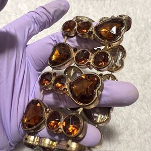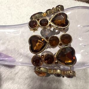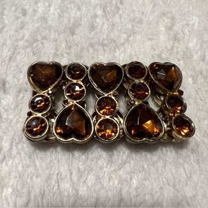 Brown Amber Heart Rhinestone Elastic Bracelet