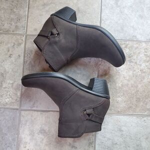 Dark Brown Suede Heeled Ankle Booties Women's Size 7.5