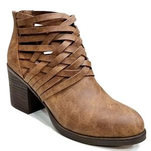Step out in style with these chic brown ankle boots. Featuring a unique strappy design, these boots are perfect for any occasion.