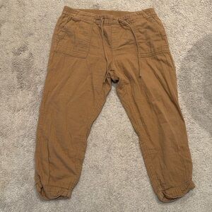 Brown Ankle Linen Drawstring Pants - Comfortable & Stylish - Size L