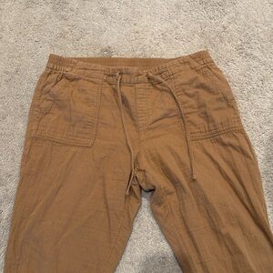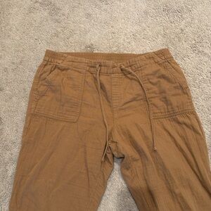 Stay cool and stylish with these Brown Ankle Linen Drawstring Pants in Size Large. Made from breathable, lightweight linen, these pants are perfect for warm weather and offer all-day comfort. The adjustable drawstring waist ensures a perfect fit, while the relaxed fit gives you the freedom to move with ease. Whether you're lounging at home or out on a casual day, these versatile pants will keep you feeling fresh and looking effortlessly chic. A wardrobe essential for every season! No flaws.