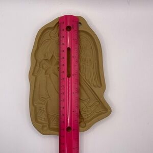 Brown bag, cookie art, ceramic cookie molds. Beautiful Christmas angel holding the Christmas star 1986, heart with roses for Valentine’s Day 1992, Christmas tree with little teddy bears, rocking horse, candle, presents, 1986, little recipe book included with directions. I only have one box but three molds these molds are on the larger size. The angel and star are approximately 6 1/2 inches long. The rose/floral mold is approximately 5 1/2 inches long. These are gently used ready for a new home. Perfect for someone who loves to bake Christmas and holiday cookies