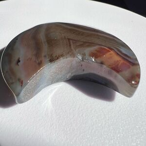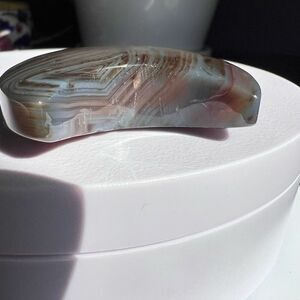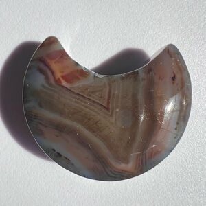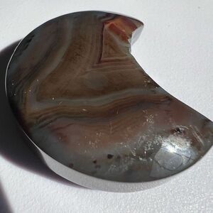 A brown banded agate crescent moon carving, with its rich earthy tones and distinct bands, is a stunning decorative piece. Metaphysically, this stone is known for grounding energy, promoting emotional stability, and enhancing mental clarity. It is believed to balance yin-yang energies and protect against negative influences.