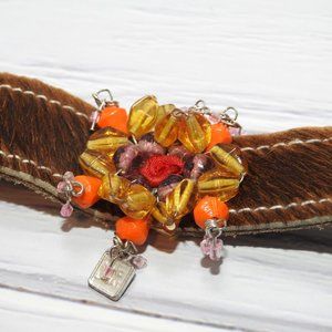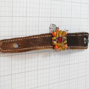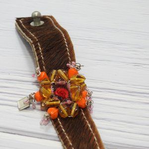 Brown Bead Bangle Faux Leather Bracelet New