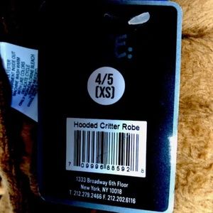 Brown Bear Plush Hooded Robe XS (4-5) NEW