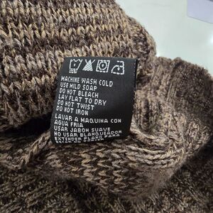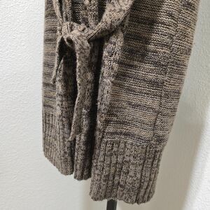 Brown Belted Cable Knit Funnel Cowl Neck Sweater Dress Womens Sz LP Short Sleeve