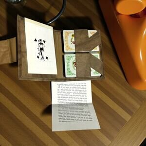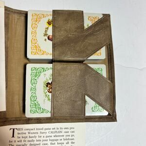 Vintage 1970s Brown & Bigelow Western Surry Calflon Travel Bridge Set featuring two sealed Norman Rockwell decks.
