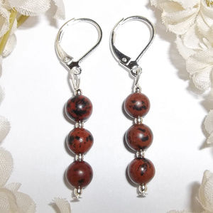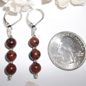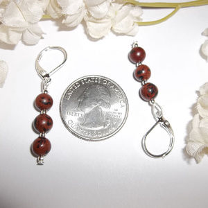 This NWT beaded earring set was handmade by me. Done with brown and black faux jasper stone beads. The pair also have silver toned costume jewelry beads. They dangle & drop from 925 sterling silver lever backs for women's pierced ears. Measure 1 3/4 inches tall and beads are 1/4 inches wide. Each single earring weighs 1.3 grams. Very lightweight!