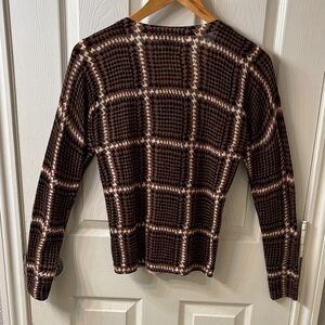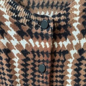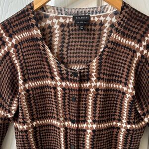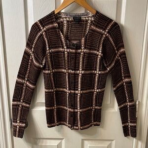 Brown, Black, Cream Preppy Plaid Long Sleeve button up cardigan XS Merino Wool