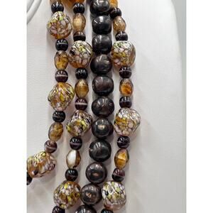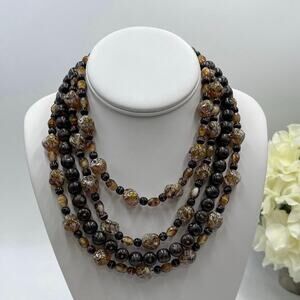 Brown Black Vintage Multi Strand Glass Lucite Rhinestone Clasp Layered Necklace