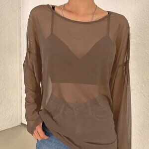 Brown Boho Women's Solid Color Loose Fit Long Sleeve Round Neck Lightwei…