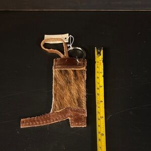 Stylish brown boot keychain with fur texture. Perfect accessory for keys.