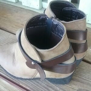 These booties are pre owned but in excellent condition. They have a small scratch on the inside of one shoe see pics.