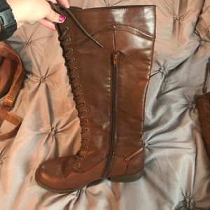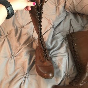 Worn only a few times! Brown lace up boots with zipper on the side.