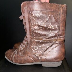 Brown boots, Rue 21 - size L 8/9. Cutouts with gold underneath