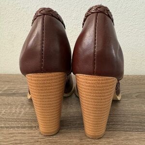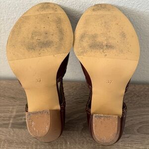 Brown Braided Faux Leather Block Heel Ankle Booties, Size 37