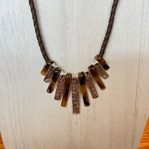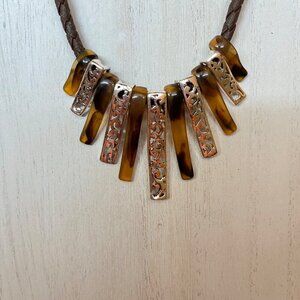 Vintage, Tortoiseshell Look, Necklace, Scrolled, Silver Tone, Brown Woven Cord