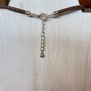 Brown Braided Necklace With Amber & Silver-Toned Pendants Adjustable Length
