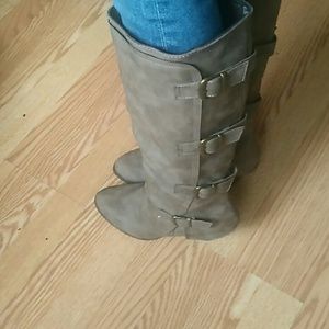 Brown boots. Like new condition! Size 8.5 but fits more like a 7.5! I only wore these once. You can wear with jeans or dress! I want to let go of these just to add variety to my closet! Thank you, feel free to make an offer :)