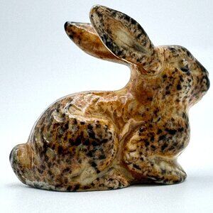 Brown Bunny Rabbit Miniature Figurine Glazed Vintage Ceramic Mottled