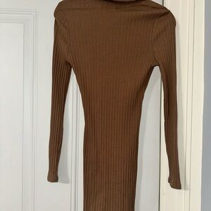 Brown Button-Up Ribbed Dress