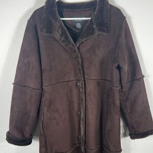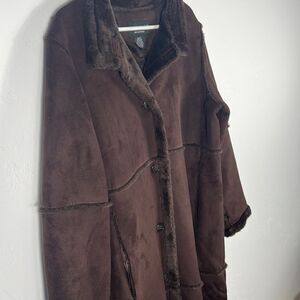 🔥🔥 Brown CENTIGRADE OUTERWEAR Long Duster Coat Jacket - Acrylic Polyester Fur Lined
