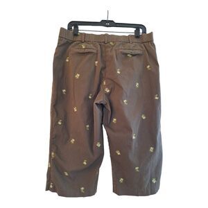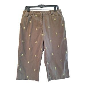 Brown Capri Pants Palm Tree Embroidery 14P Counterparts Cotton Twill Petite L