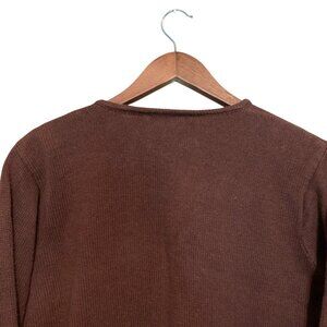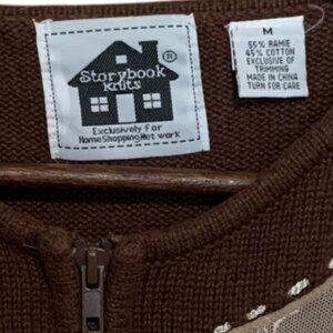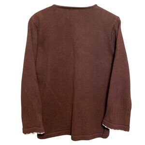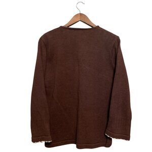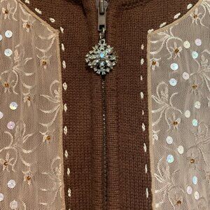 Brown Cardigan Lace Front Panels Rhinestone Zipper Pull Grannycore