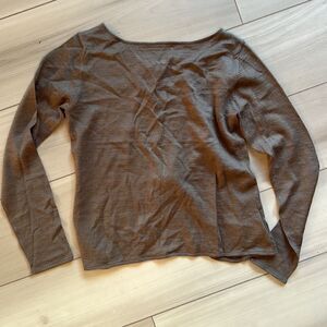 Size XS long sleeve cardigan. This cardigan is a beautiful soft brown earth tone color and a tie blend material of what feels like linen and a cotton mixture. Perfect for overtop of a dress or a white blouse with a pair of light colored jeans.