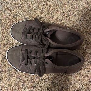 Stylish brown casual sneakers with lace-up design. Comfortable and versatile for everyday wear.