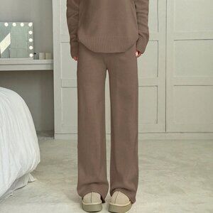 Brown Casual Women's Crew Neck Long Sleeve Sweater And Long Pants Set