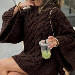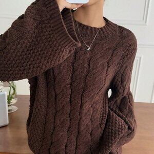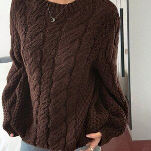 Brown Casual Women's Hemp Pattern Round Collar Wide Sleeve Long Sleeve Sweater
