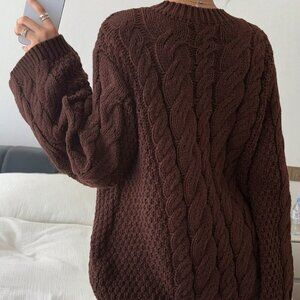 Brown Casual Women's Hemp Pattern Round Collar Wide Sleeve Long Sleeve Sweater