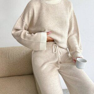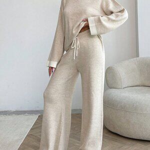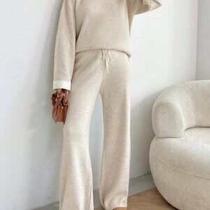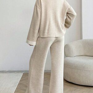 Brown Casual Women's High Neck Soft Touch Sweater and Pant Two Piece Set