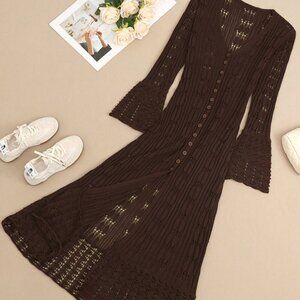 Brown Casual Women's Long Sleeve Button Elegant Crochet caridgan