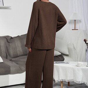Brown Casual Womens Raglan Sleeve Sweater & Knit Wide Leg Pants