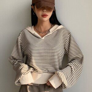 Brown Casual Womens Striped Drop Shoulder Sweatshirt