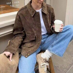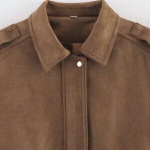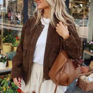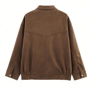 Brown Casual Women's Zip upfaux Suede Bomber Jacket Coat