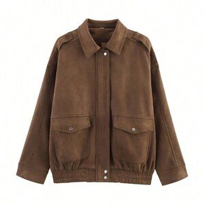Brown Casual Women's Zip upfaux Suede Bomber Jacket Coat
